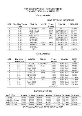 BẢNG BÁO TÔN 23|10|2022 Quý khách hàng có thể tham khảo bảng giá dưới đây...